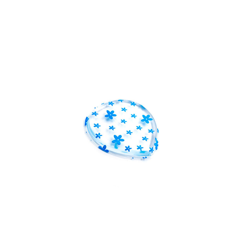 Спонж для макияжа TNL Силиконовый плоский сердце прозрачный с голубыми цветами