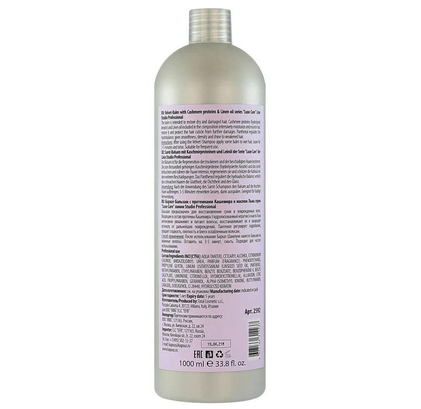 Выбирая бальзам "Бархат-Бальзам с протеинами кашемира и маслом льна" серии "Luxe Care" от Studio Professional, вы получаете профессиональный уход за волосами в домашних условиях.