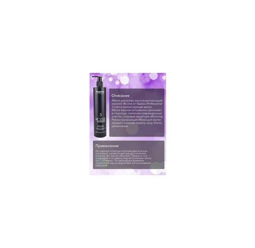 Выбирая маску для глубокого восстановления волос "Re:vive" от Kapous Professional, вы получаете профессиональный уход за волосами в домашних условиях.