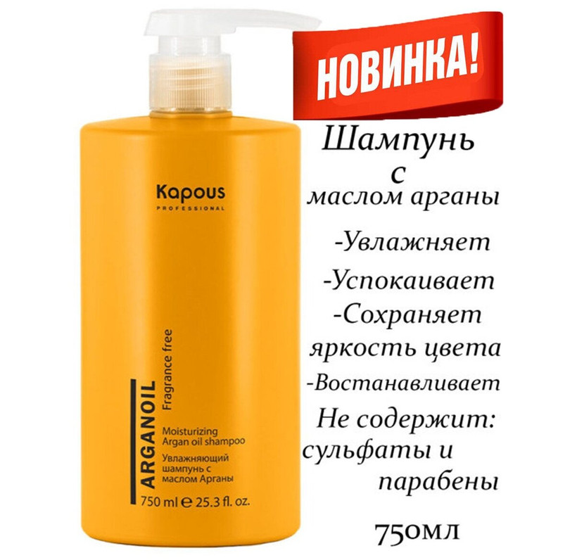 Увлажняющий шампунь с маслом арганы Kapous "Arganoil", 750 мл