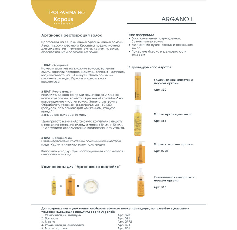 Применение бальзама простое и удобное: после использования увлажняющего шампуня с маслом арганы равномерно нанесите бальзам на влажные волосы, оставьте на 3-5 минут и смойте. Подходит для частого использования.