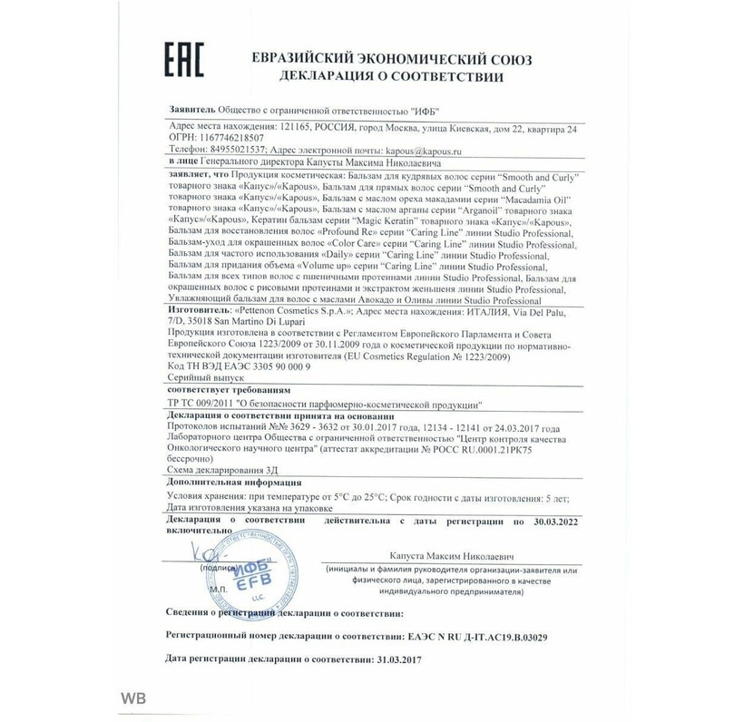 Продукт не содержит парабенов и сульфатов, что делает его безопасным для использования.