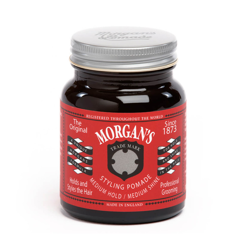 Помада обладает средним уровнем блеска и длительным периодом фиксации. Для всех типов волос средней длины до 10 см. Имеет среднюю фиксацию. Легко смывается водой. Классический ароматный букет Morgan's в виде бергамота, жасмина, сандала и пачули. Поставляется в оригинальной стеклянной баночке в винтажном стиле. Подходит для стилей — SLICK BACK и POMPS.
