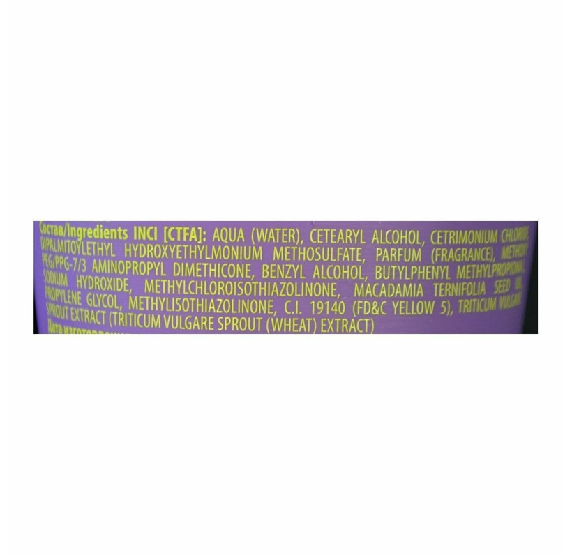 aqua (water), cetearyl alcohol, cetrimonium chloride, dipalmitoylethyl hydroxyethylmonium methosulfate, parfum (fragrance), methoxy peg/ppg-7/3 aminopropyl dimethicone, dipropylene glycol, triethylene glycol, benzyl alcohol, propylene glycol, butylphenyl methylpropional, sodium hydroxide, methylchloroisothiazolinone, methylisothiazolinone, macadamia ternifolia seed oil, ci 19140 (fd&c yellow 5), triticum vulgare sprout extract (triticum vulgare sprout (wheat) extract), phenoxyethanol, pentaerythrityl tetra-di-t-butyl hydroxyhydrocinnamate, ethylhexylglycerin.