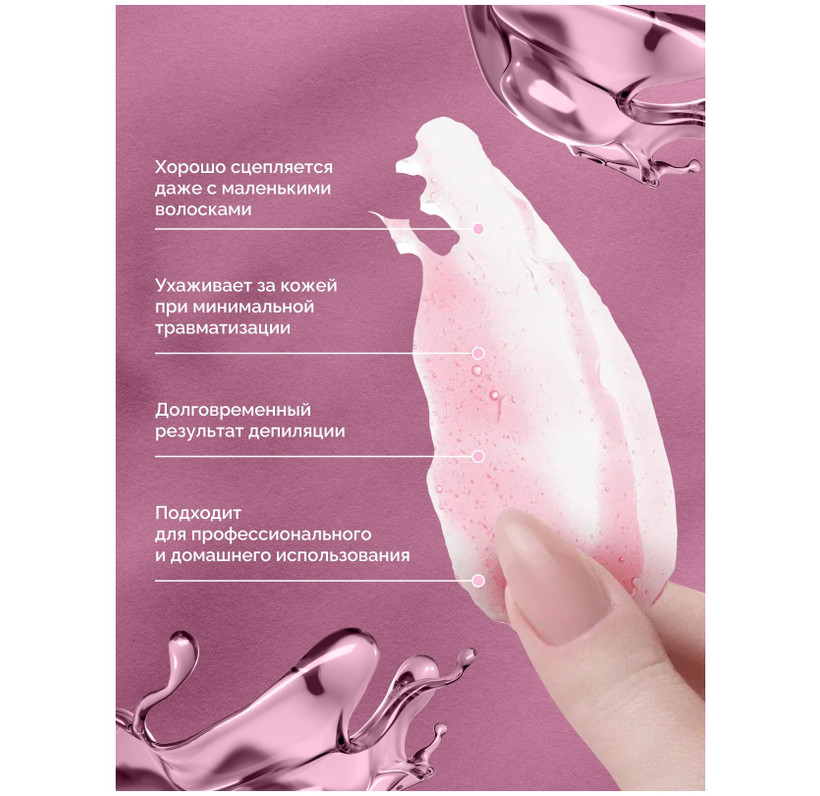 Воск выпускается в гранулах, что облегчает его использование и предотвращает растекание. Минимальная температура плавления составляет 38 градусов, что делает его удобным для использования в домашних условиях и в салонах.
