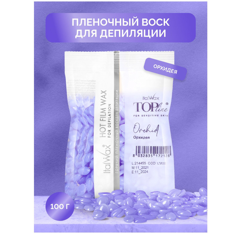 Воск горячий (пленочный) ITALWAX Top Line Orchid (Орхидея) гранулы 100гр №30 - это профессиональное средство для восковой эпиляции, разработанное итальянским брендом ItalWax. Особенности: не тестируется на животных, протестировано дерматологичкски, пленочный, состав набора: воск, страна бренда: Италия, тип: воск, форма выпуска воска: в гранулах, плотность воска: низкая, минимальная температура плавления воска: 38.0, максимальная температура плавления воска: 38.0, тип воска: горячий, техника эпиляции: мануальная.