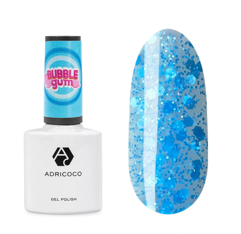Коллекция гель-лаков ADRICOCO Bubble Gum состоит из 8 сочных цветов, которые смотрятся броско и стильно в качестве самостоятельного покрытия, а также могут стать нежным и красивым акцентом в нейл-арте. Каждый оттенок — это яркое сочетание цветного витражного фона и микса неоновой слюды. Гель-лак Bubble gum не требует нанесения базы, можно сразу наносить на ноготь; имеет среднюю консистенцию.