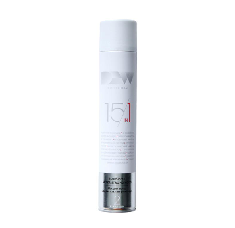Лак 15 в 1 от Dew Professional - лучшее стайлинг средство для укладки и для объема волос. Сухой лак для волос экстрасильной фиксации – это нежный и бережный уход за волосами, а также защита для волос. Укрепляющий лак не только придает объем волос у корней, но также улучшает структуру окрашенных, тонких, поврежденных и ослабленных волос.