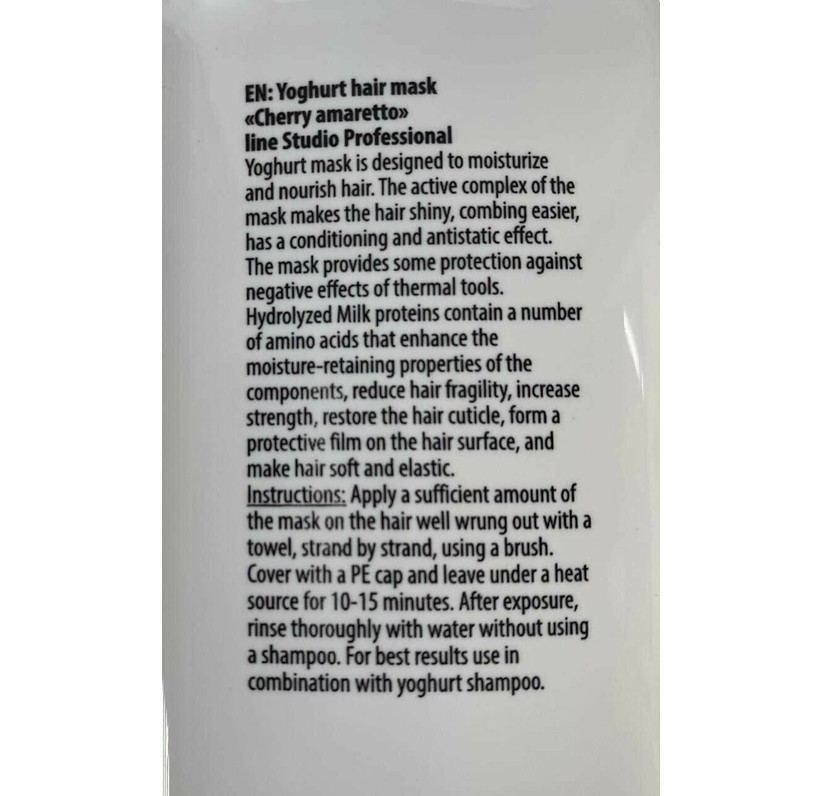 Йогуртовая маска для волос «Вишнёвый амаретто» линии Studio Professional – это профессиональное средство для ухода за волосами, которое обеспечивает увлажнение, питание и восстановление волос.
