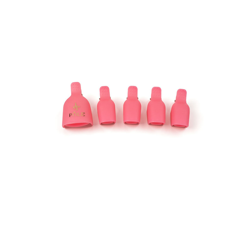 Многоразовые зажимы для снятия гель-лака для педикюра POLE (5 шт./уп.) розовые