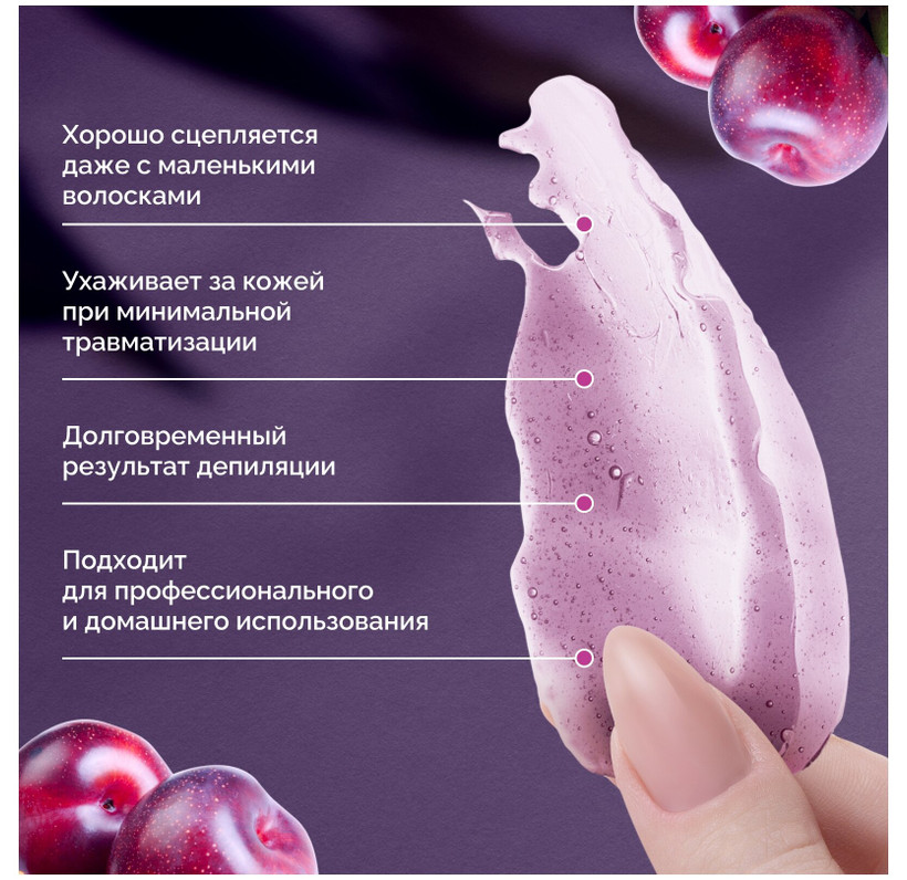 Воск обладает средней плотностью и подходит для всех типов волос, включая пушковые и умеренно жесткие. В состав воска входят активные ингредиенты, такие как пчелиный воск и диоксид титана, а также натуральные экстракты и масло кокоса. Эти компоненты обеспечивают эффективное удаление волос, увлажнение и питание кожи, а также защиту от раздражения и воспаления.