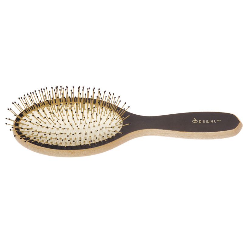 Щетка массажная DEWAL BLACKWOOD овальная выполнена в бежевом цвете, что делает ее стильным аксессуаром для ухода за волосами.
