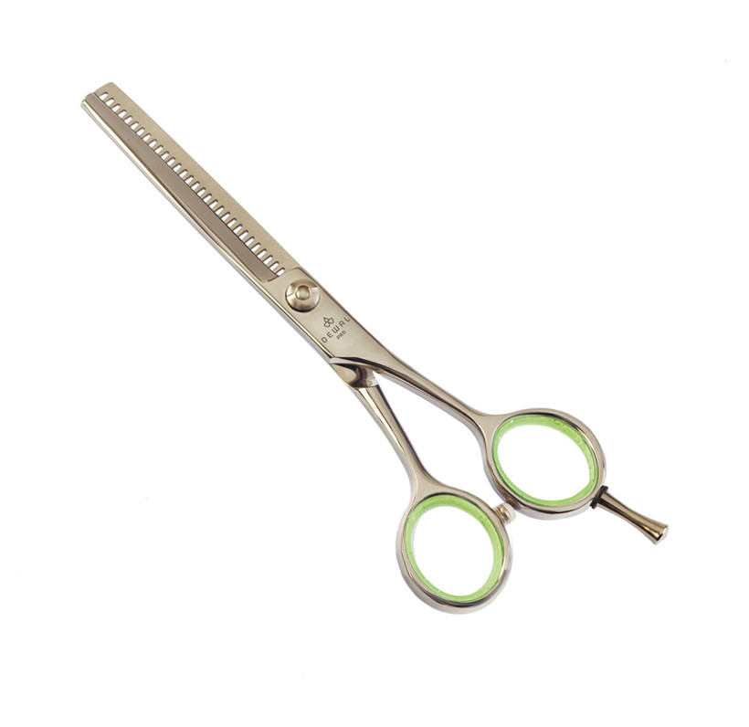 Ножницы DEWAL Profi Step обладают рядом особенностей, которые делают их незаменимыми для профессионалов. Они оснащены винтом, обеспечивающим мягкий ход ножниц и постоянное натяжение полотен. Конвекционная заточка с углом 40 градусов и твердость по шкале роквелла 57 единиц гарантируют долгий срок службы и высокую точность работы.