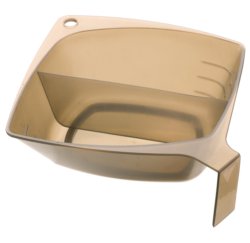 Стильный полупрозрачный аксессуар в коричневом цвете, изготовлен из прочного и устойчивого к агрессивным красящим веществам пластика. Конструкция чаши отличается устойчивостью, благодаря надёжной противоскользящей резинке.