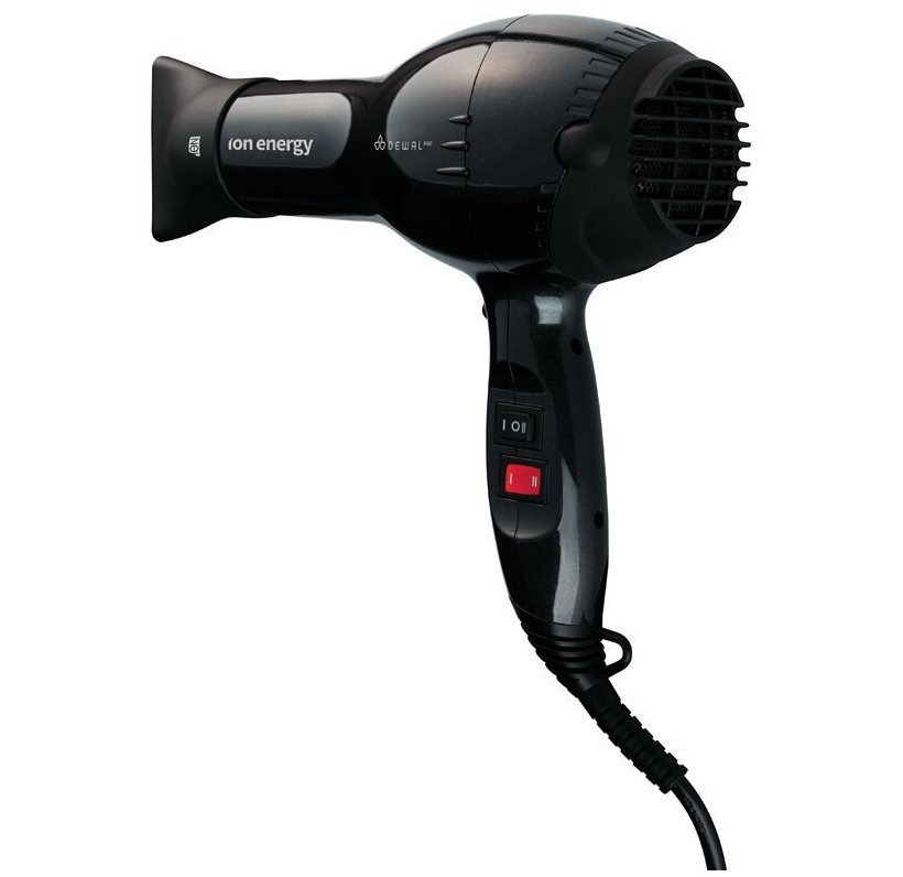 Корпус фена DEWAL ION Energy выполнен в темно-сером цвете, который не тускнеет и не стирается в течение всего срока службы.