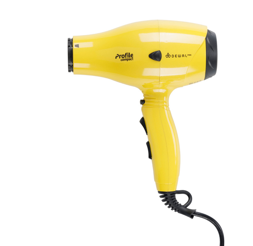 Фен DEWAL Profile Compact имеет яркий желтый цвет, который не тускнеет и не стирается в течение всего срока службы.