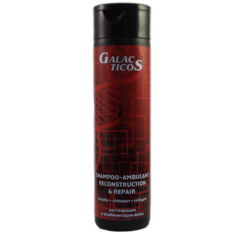 Шампунь К3 Galacticos содержит кератин, хитозан и коллаген, которые обеспечивают глубокое восстановление волос и их защиту.