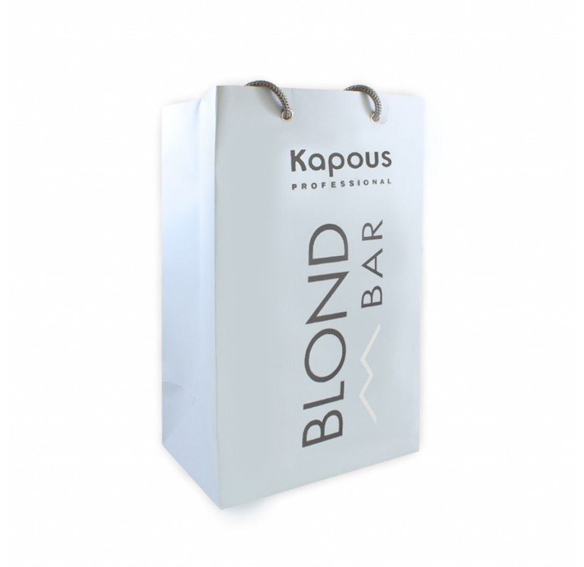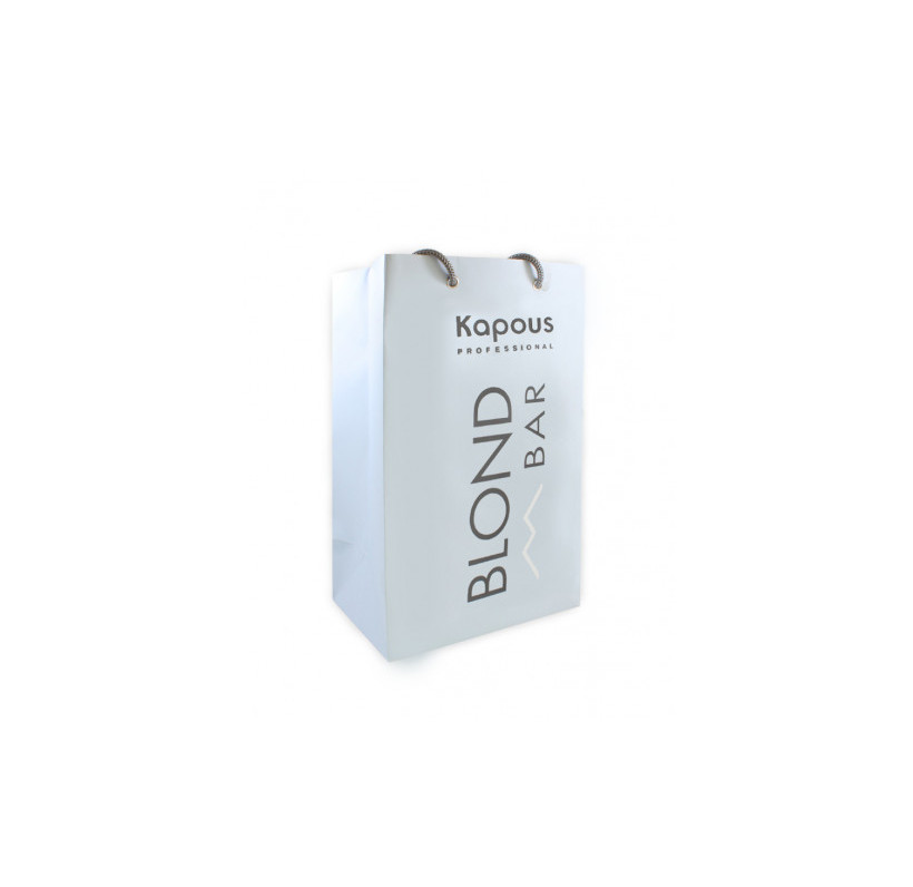 Фирменный пакет от бренда Kapous Professional. Пакет «Blond Bar» с удобными ручками и изысканным рисунком. Ширина 15 см, высота 24 см, глубина 10 см.