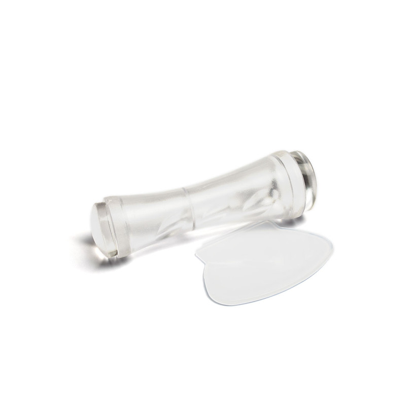 Прозрачный штамп для стемпинга позволит забыть о сложности расположения рисунка на ногте. Через окошко на ручке инструмента видно, как дизайн будет размещен. С этим штампом особенно удобно переносить на ноготь отдельные элементы поверх уже существующего изображения.