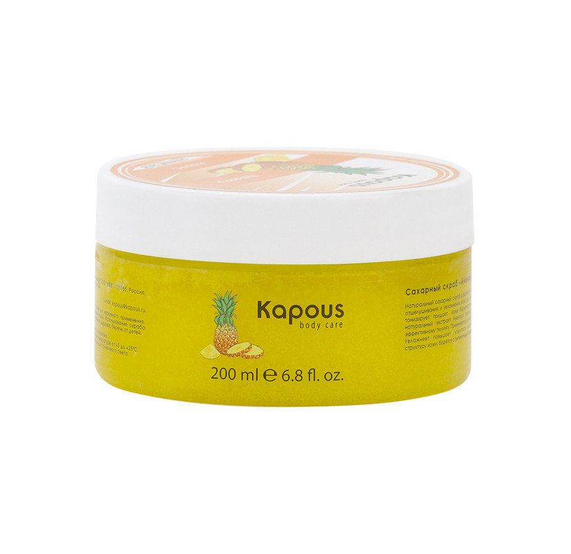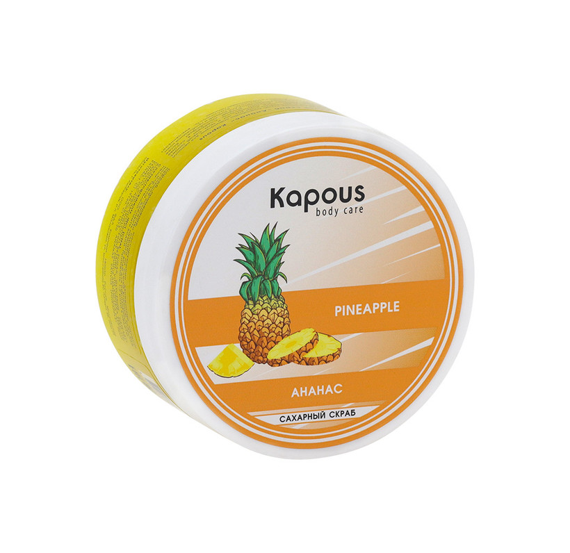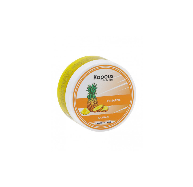 Натуральный сахарный скраб для нежного отшелушивания и увлажнения кожи рук, ног и тела. Скраб питает, тонизирует, придает коже бархатистость. Cодержит в составе натуральный экстракт Ананаса, который способствует более эффективному пилингу. Увлажняет, повышает упругость, эластичность, выравнивает структуру кожи, борется с пигментными пятнами. Насыщенный фруктовый аромат придает свежесть и тонизирует.