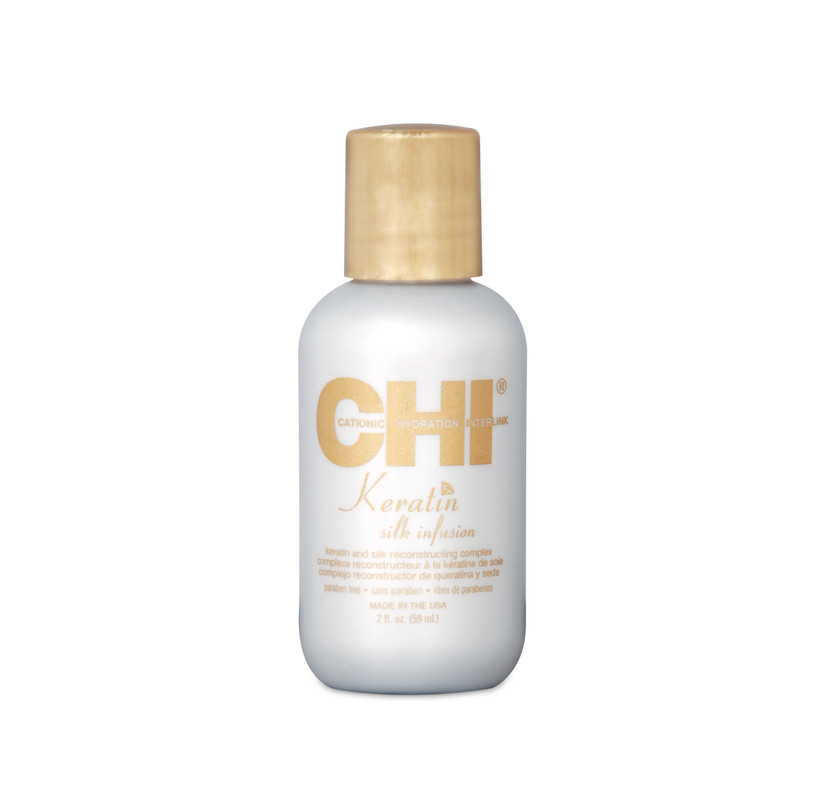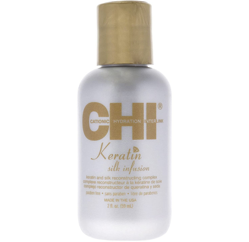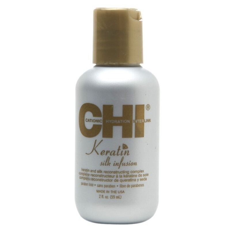 CHI KERATIN Silk Infusion 59 мл CHI0217 – это реконструирующий комплекс, который восстанавливает и увлажняет даже самые сухие и тонкие волосы. Он сохраняет влагу и разглаживает кутикулу волос, улучшая эластичность и предотвращая повреждение.