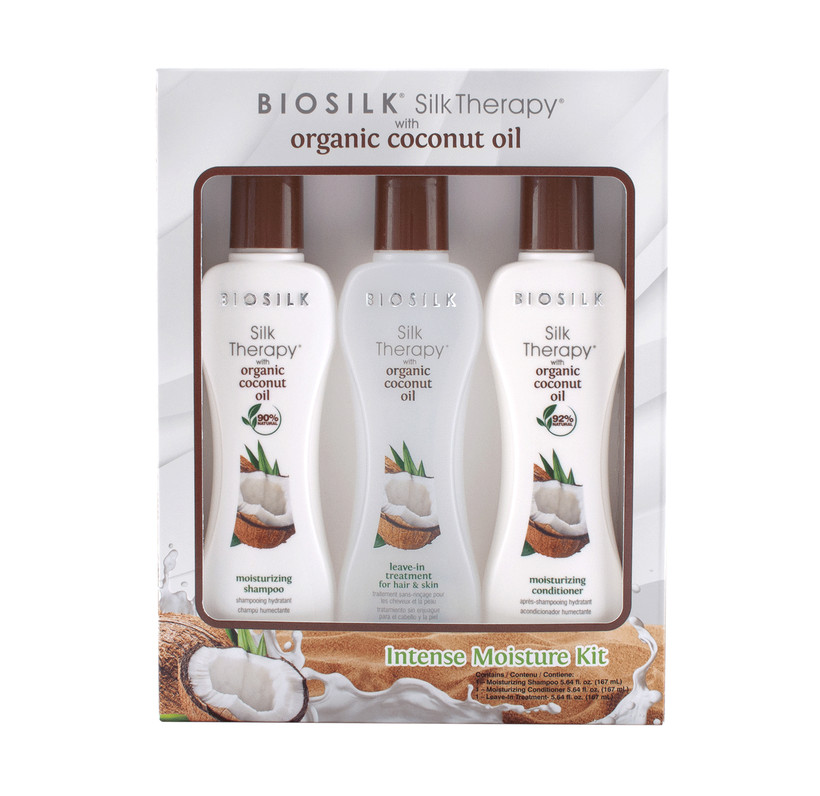 Набор для волос и тела Интенсивное Увлажнение Biosilk Silk Therapy Organic Coconut Oil Intensive Miisture Kit 3x167 мл BSK1037 - набор из трех увлажняющих продуктов линии Silk Therapy Organic Coconut Oil, шампуня, кондиционера и несмываемого ухода.
