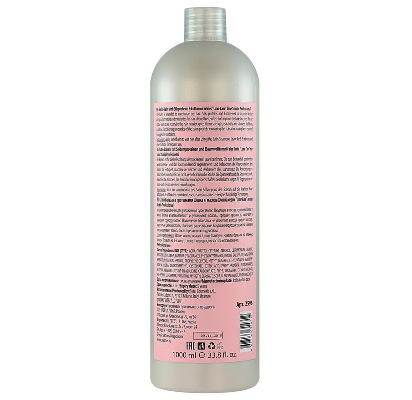 Сатин-Бальзам с протеинами шелка и маслом хлопка серии "Luxe Care" Studio Professional, 1000 мл