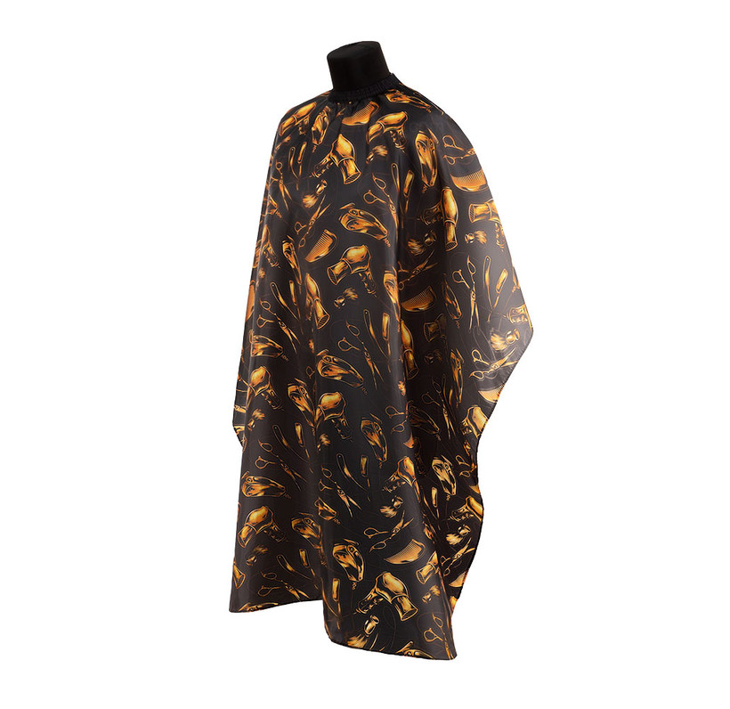 Плотный материал не пропускает потоки горячего воздуха, а длина аксессуара оберегает кожу от влаги и косметических средств. Мягкий воротничок легко регулируется и не сдавливает шею. Принт пеньюара вдохновлен богатым арсеналом мастера парикмахерского искусства.