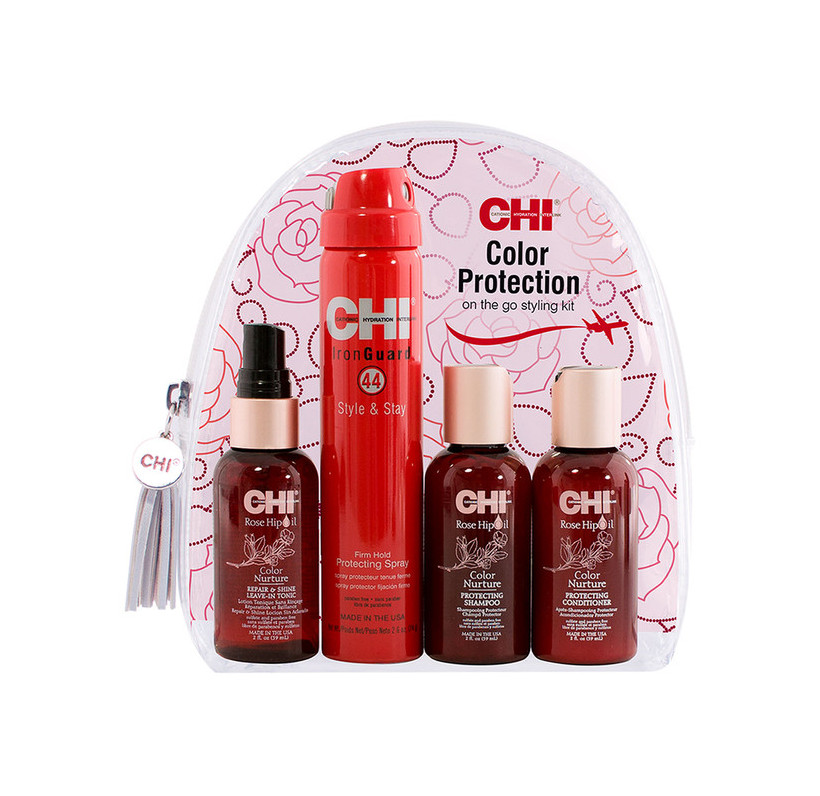 Набор Color Protection Kit от CHI - это дорожный набор для ухода за окрашенными волосами, который включает в себя четыре средства travel-формата.