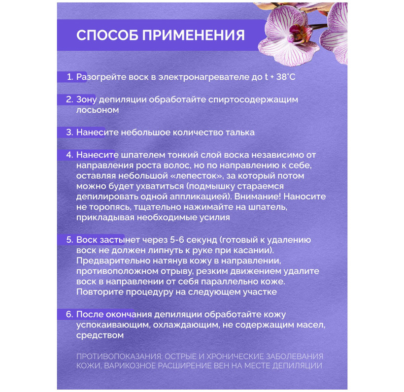Воск ITALWAX Top Line Orchid подходит для всех типов волос и кожи, включая чувствительную и склонную к аллергии.