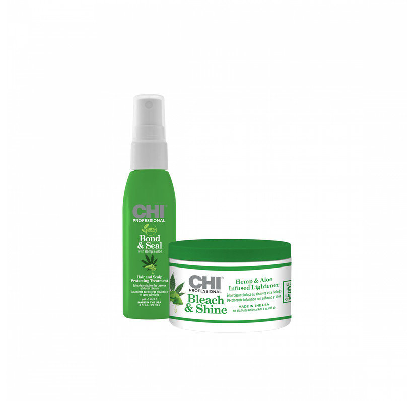 Разработанная для использования в качестве конечной системы, процедура по осветлению и окрашиванию волос без ущерба для целостности волос, одновременно защищая кожу головы. Система осветления CHI BOND + включает в себя Bleach and Shine, а также Bond и Seal с натуральными связующими, которые помогают укрепить и защитить, во время и после окрашивания или осветления. Идеально подходит для процессов подъема экстремального уровня и коррекции цвета. Цвет волос достигается, волосы и кожа головы защищены. CHI Bleach & Shine - мощный осветлитель с эффектом лифтинга до 9+ уровней. Настой конопляного масла и алоэ вера помогает предотвратить ломкость во время осветления. Высокое содержание жирных кислот, белков, витаминов и других питательных веществ, Конопля помогает сохранить волосы сильными и питательными, а кондиционирующие свойства алоэ вера сохраняют волосы и кожу головы увлажненными и защищенными.