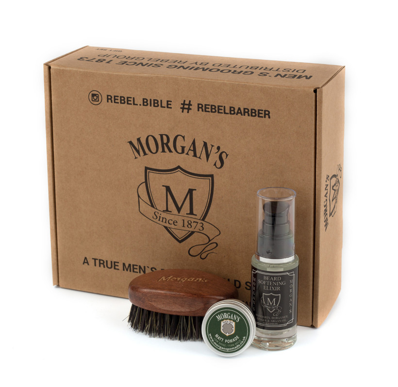 Подарочный набор эликсир + щетка для бороды и усов с тестером Morgans