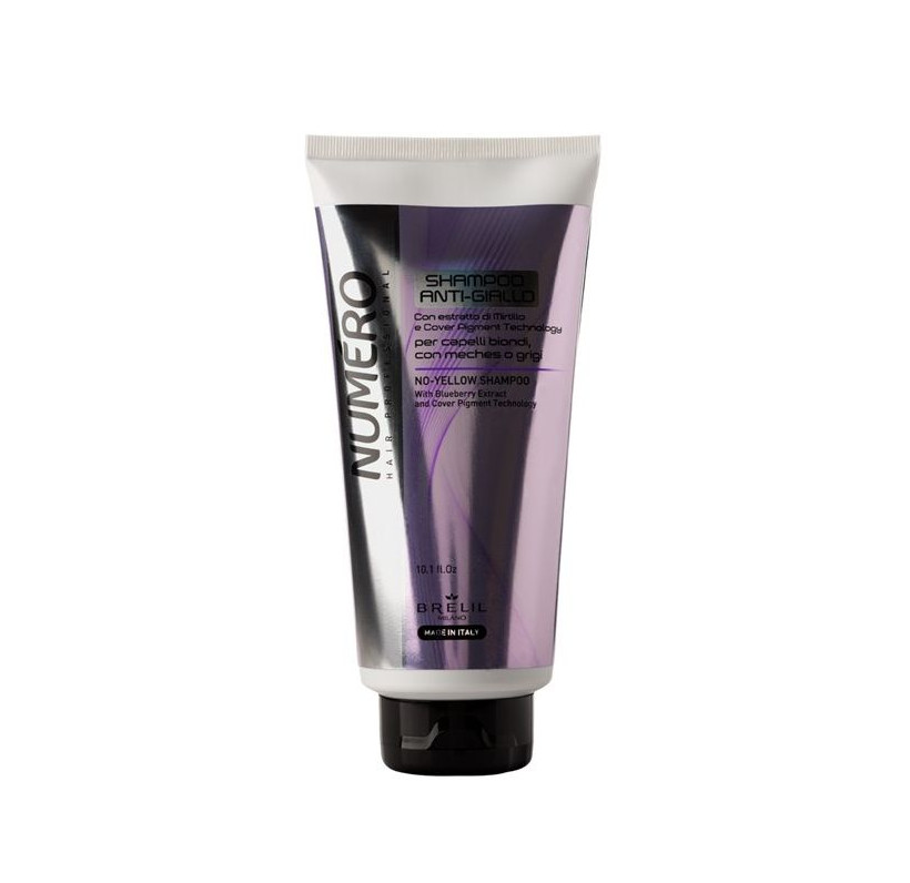Шампунь NUMERO Антижелтый 300 мл от Brelil Professional – профессиональное средство для ухода за окрашенными, осветленными и мелированными волосами. Произведенный в Италии, этот шампунь обеспечивает эффективное тонирование и нейтрализацию нежелательного эффекта желтизны.