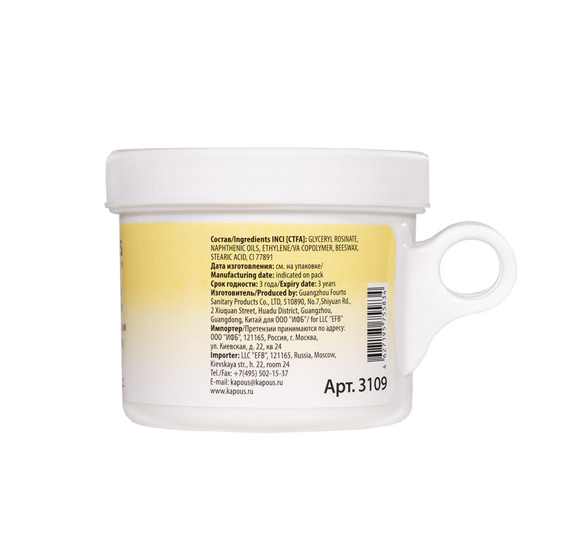 Выбирая воск для депиляции Kapous "Белый шоколад", вы получаете качественный продукт, который поможет вам быстро и эффективно избавиться от нежелательных волос, при этом обеспечивая комфорт и безопасность процедуры.