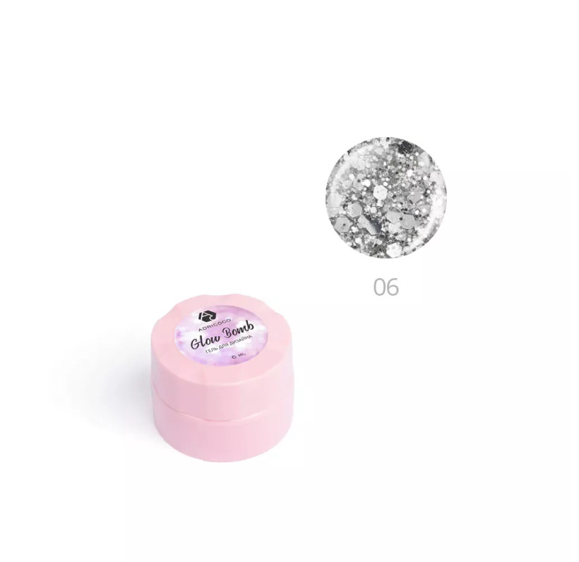 Гель для дизайна ногтей ADRICOCO Glow Bomb №06 "Серебряный лед" (5 мл.)