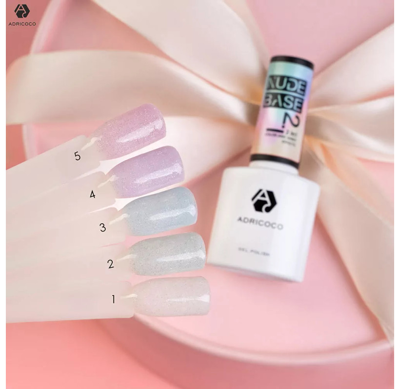 Нежность и блеск вашего маникюра со светоотражающей цветной базой ADRICOCO Nude Base 2 in 1.