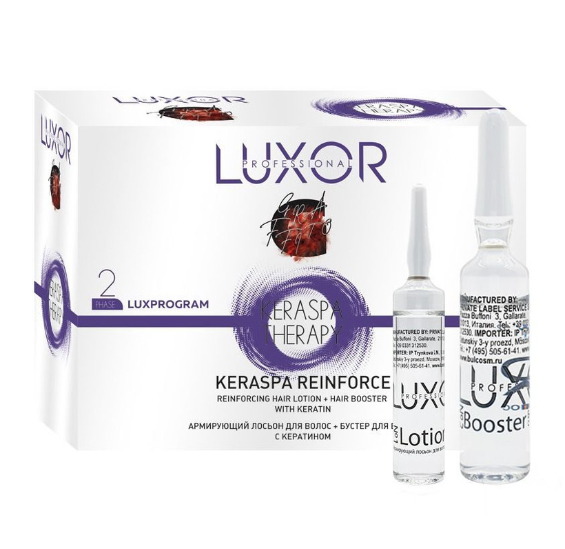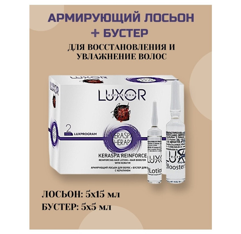 Армирующий лосьон 5х15 мл + Бустер для волос 5х5 мл с кератином LUXOR Professional италия фаза 3