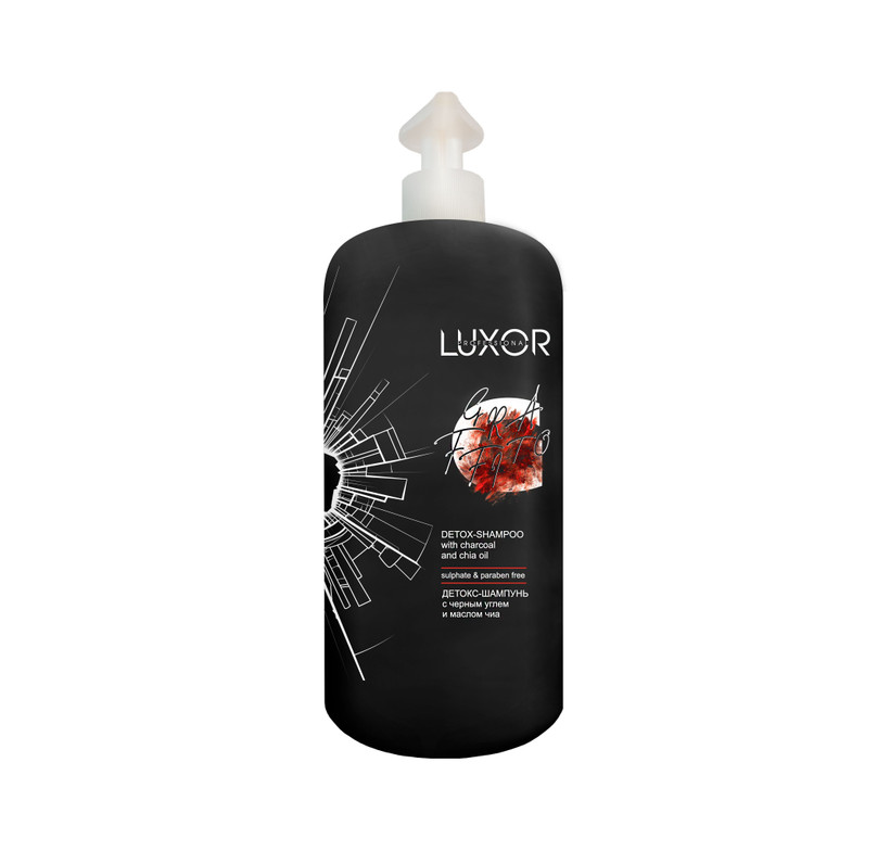 LUXOR PROFESSIONAL Детокс-шампунь с черным углем и маслом чиа серии Sulfate&Paraben Free марки 1000 мл