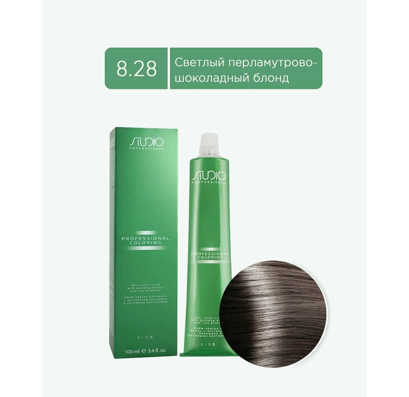 S 8.28 светлый перламутрово-шоколадный блонд, крем-краска для волос с экстрактом Женьшеня и Рисовыми протеинами Studio Professional, 100 мл