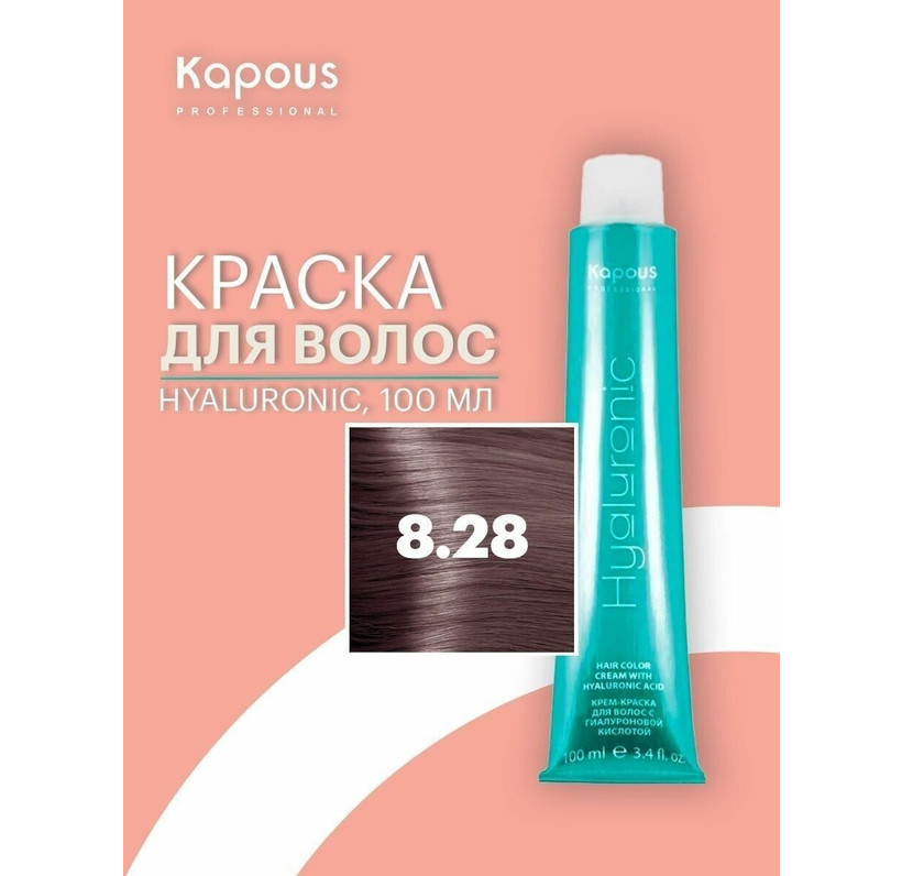 HY 8.28 Светлый блондин перламутровый шоколадный Крем-краска для волос Kapous с Гиалуроновой кислотой, 100 мл