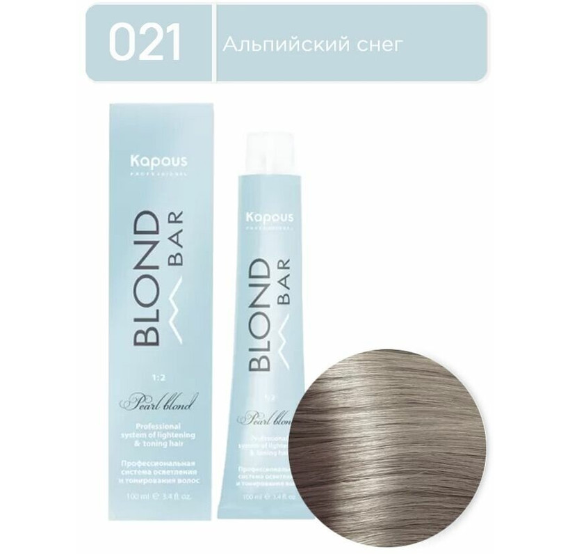 BB 021 Альпийский снег, крем-краска для волос с экстрактом жемчуга Kapous "Blond Bar", 100 мл