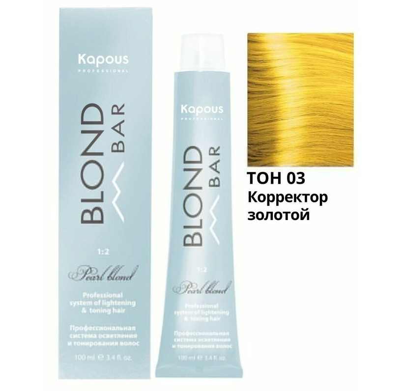BB 03 Корректор золотой, крем-краска для волос с экстрактом жемчуга Kapous "Blond Bar", 100 мл