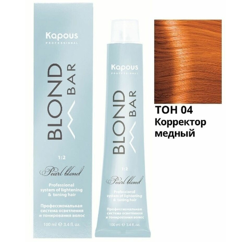 BB 04 Корректор медный, крем-краска для волос с экстрактом жемчуга Kapous "Blond Bar", 100 мл