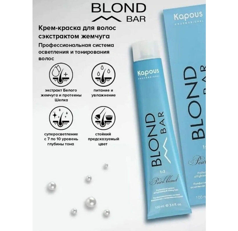 BB 1023 Перламутровый золотистый, крем-краска для волос с экстрактом жемчуга Kapous "Blond Bar", 100 мл