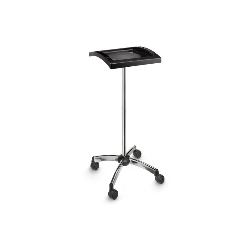Тележка одноярусная из пластика на колесах. Имеет большую рабочую поверхность и боковые отделения для сопутствующих аксессуаров.