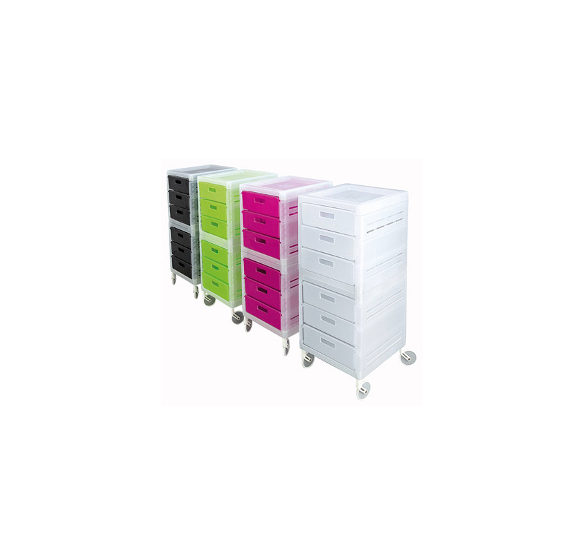 Тележка парикмахерская на колесиках. Выполнена из прочного пластика, имеет 6 выдвижных ящиков.