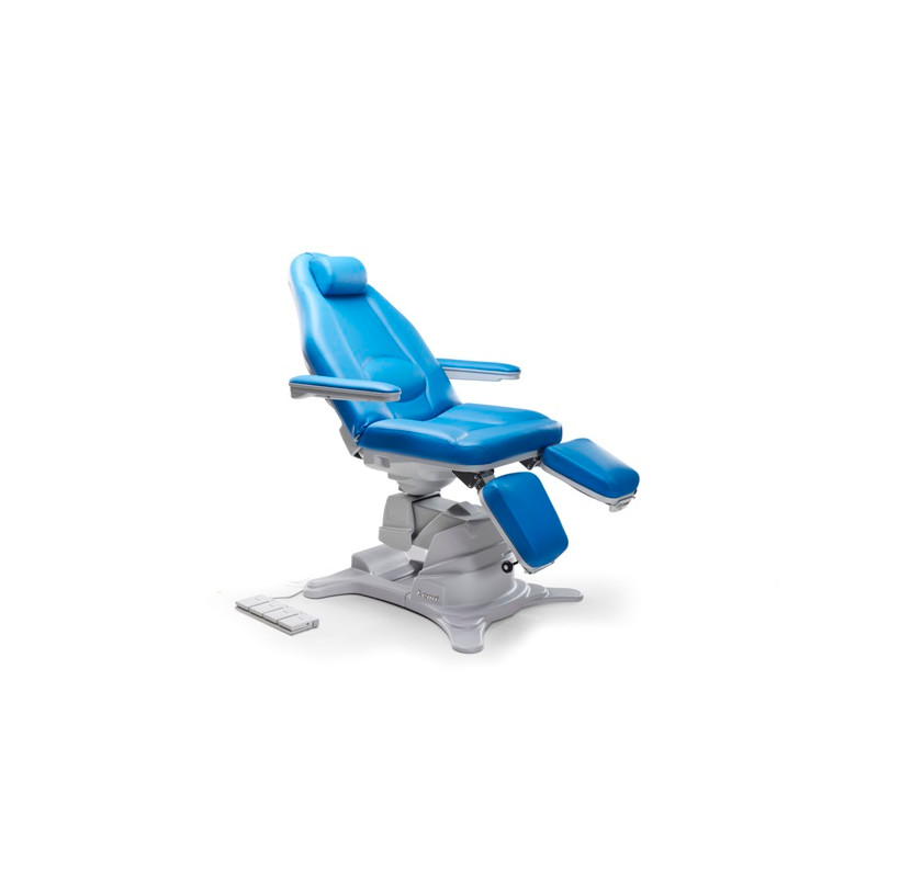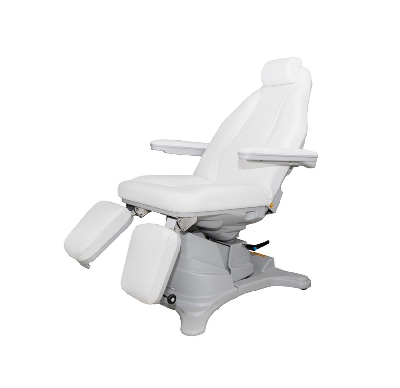 Педикюрное кресло PODO DREAM предназначено для проведения процедуры педикюра. Анатомический матрас имеет эргономичную форму, делая кресло более функциональным, безопасным и комфортным для клиента во время проведения процедур. Кресло оснащено тремя электромоторами, с помощью которых регулируются высота, наклон спинки и угол наклона кресла (тренделенбург), регулировки осуществляются за счет ножного пульта управления, угол наклона подножных частей, регулируется механически. Система полной электрической регулировки делает педикюрное кресло PODO DREAM идеальным решением для профессионалов, стремящихся создать комфортные условия работы. Наличие трех электроприводов позволит подобрать наиболее удобное положение и высоту, клиент может удобно сесть в кресло благодаря его минимальной высоте, составляющей 52 см. Кресло комплектуется плоскими подлокотниками, подголовником и имеет возможность поворота на 180°. Каркас кресла выполнен из оцинкованной стали и полностью закрыт пластиком ABS, что придает креслу элегантность и обеспечивает его безопасность. Широкая цветовая палитра искусственной кожи, на заказ.