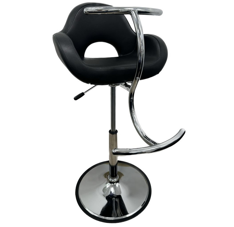 Детское парикмахерское кресло с подножкой. Кресло комплектуется пневматикой для регулировки высоты и хромированным дисковым основанием. Цвет: черный Высота от пола до посадочного места: 56-83 см. Глубина посадочного места (до спинки): 30 см. Размер от подножки до окончания спинки: 60 см