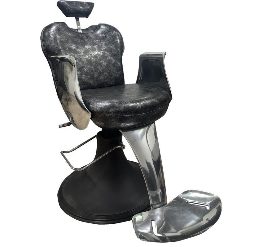 Кресло для клиента – мужское, на гидравлике с блокировкой на диске. Каркас кресла изготовлен из многослойной фанеры, выполнен из высококачественного полиуретана. Кресло оснащено хромированными подлокотниками и подставкой для ног из литого алюминия, регулируемой спинкой и регулируемым по высоте подголовником. Обивка - искусственная кожа высшего качества.