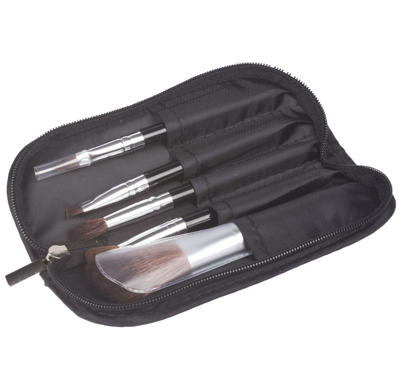 Компактный набор профессиональных мини - макияжных кистей. В набор входят: кисть для нанесения теней - 2 шт.; кисть для губ; кисть для румян; кисть для подводки контура глаз и коррекции бровей.